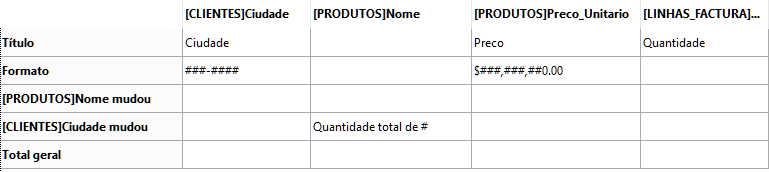 4D lhe permite ocultar linhas ou colunas em um relatório rápido en Lista. Si lo desea, puede mostrar una columna o línea oculta. Esta posibilidad es útil, por ejemplo cuando quiere que el informe incluya só os cálculos em resumo. Por exemplo, oculte a linha de Detalhe se deseja mostrar unicamente os cálculos que aparecem nas linhas de subtotal e total general. Também pode utilizar esta característica para ocultar uma das linhas subtotal ou a linha total. Pode ocultar uma coluna se necessário utilizada como coluna de ordenação mas não deseja mostrada no relatório.