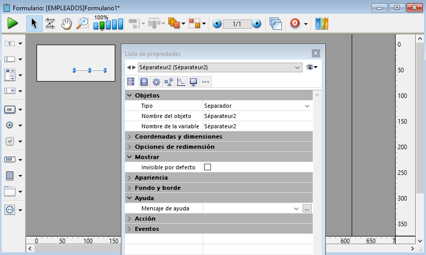 Para más información acerca del uso de divisores en formularios, consulte Separadores.