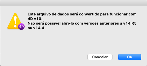 Depois de converter o arquivo de estrutura em 4D v16, já não pode ser aberto com uma versão anterior.