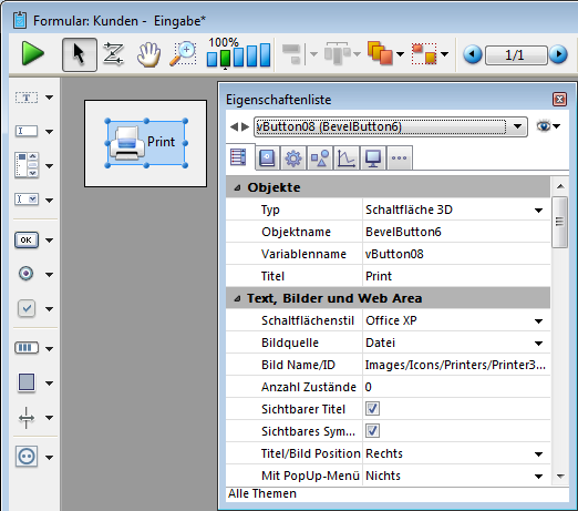 Fügt eine XP Toolbar Schaltfläche mit vorformatierter 3D Darstellung hinzu. Sie können die Eigenschaften über die Eigenschaftenliste anpassen.