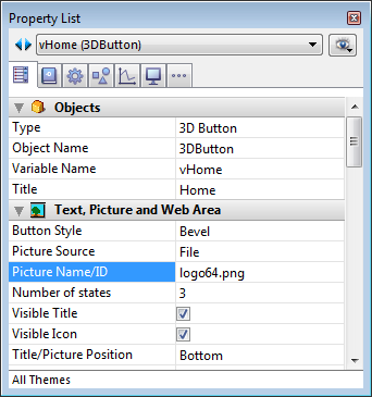 • If you drop the picture on a dynamic object (picture button, 3D button, picture pop-up menu, etc.), 4D automatically sets the "File" picture source and inserts the picture reference into the form as follows:“{pathname+}filename”.