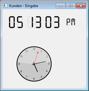 Fügt einen Zeitanzeigebereich (Uhr oder LCD) als statische Zeit oder laufende Uhr hinzu. Das richtet sich nach dem Typ der zugewiesenen Variable.
