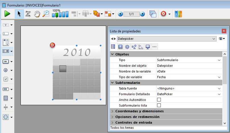 Nota: inicialmente, Date picker, Pop-up Date y Date comparten la misma variable Date y mostrarán las fechas que coincidan cuando se utilicen en el mismo formulario.