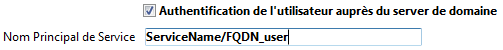 Cette option déclare le SPN tel que définit dans la configuration de l'Active Directory. Un nom principal de service est un identifiant unique d'une instance de service. Des SPN sont utilisés par l'authentification Kerberos pour associer une instance de service à un compte d'ouverture de session. Cela permet à une application cliente de demander que le service authentifie un compte même si le client n'a pas accès au nom du compte. Pour plus d'informations, veuillez vous reporter à la page SPN sur le site msdn.