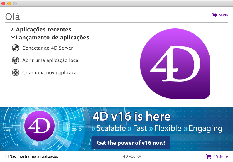 Se este é o primeiro lançamento da aplicação 4D ou se não há modificado os parâmetros de inicio, aparece a caixa de diálogo de boas vindas: