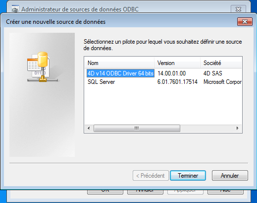 Pour ajouter une Source de données en utilisant le pilote 4D ODBC :