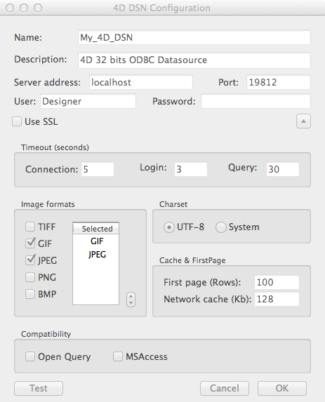 4D ODBC Driver 自身の設定パネルが表示されます:
