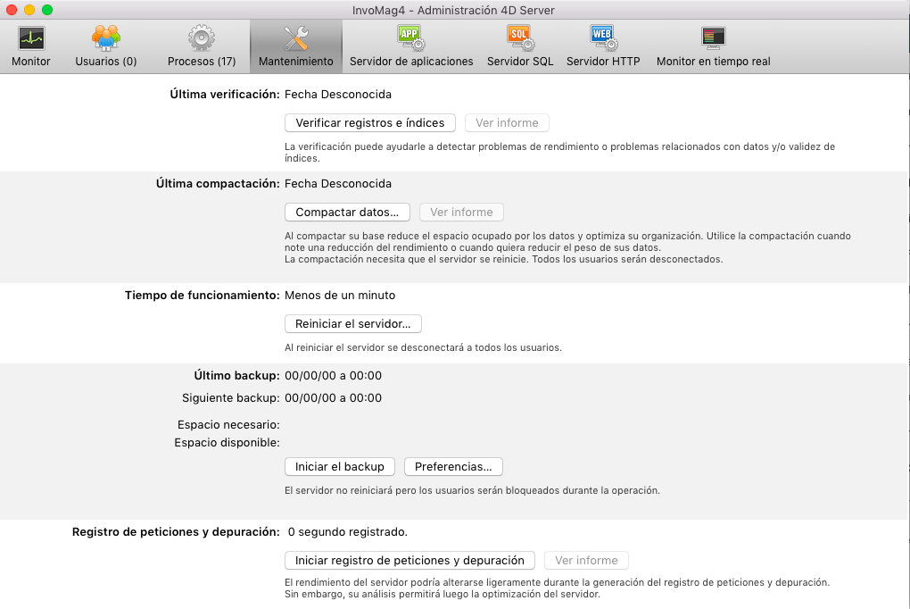 Tema: Ventana de administración de 4D Server