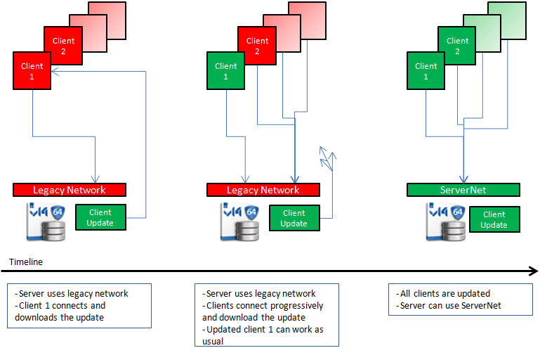 Se sua aplicação funciona com clientes 4D Volume Desktop fusionadas em versões anteriores a v14 R4, e deseja utilizar o mecanismo automático de 4D Server para distribuir suas aplicações cliente atualizadas através da rede, é necessário estabelecer uma estratégia de migração. Esta estratégia deve ser baseada nos seguintes princípios: