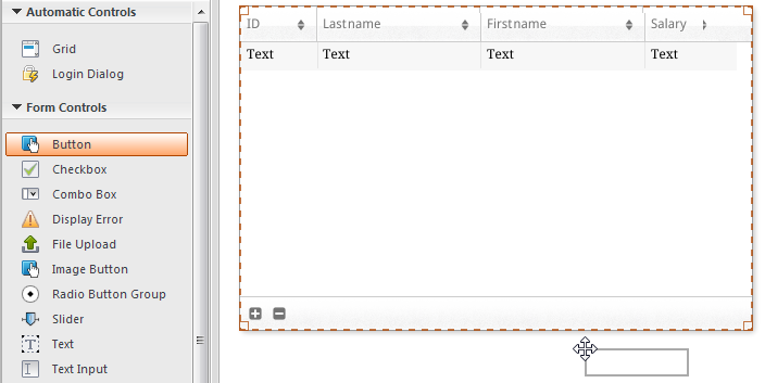 In the list of Widgets, click on "Grid" and drop it in the work area: