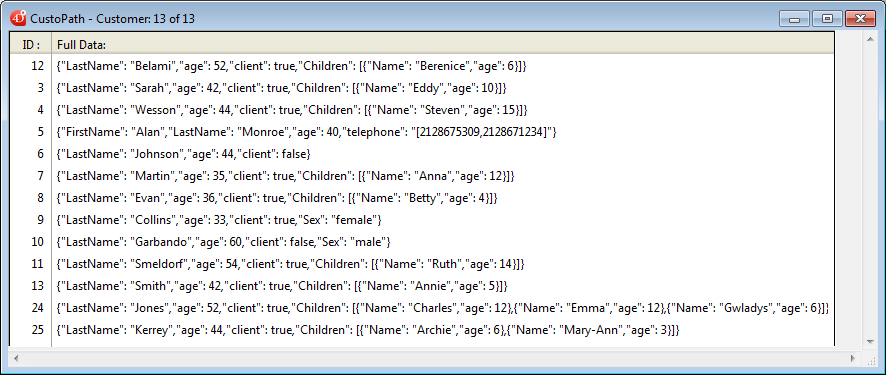 Sua tabela [Customer] contém um campo objeto "full_Data" com os seguintes dados: