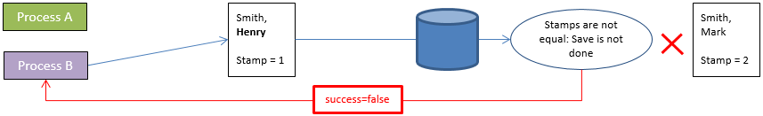 - Cuando los valores coinciden, la entidad se guarda y el valor de sello interno se incrementa.