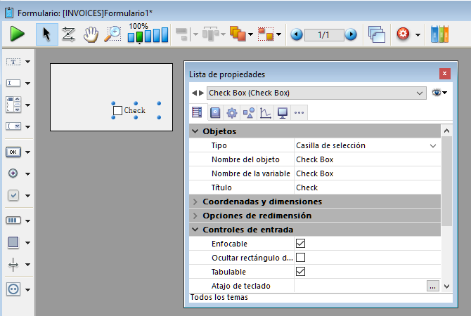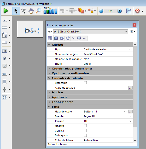 Añade una casilla de selección de tamaño pequeño (disponible en Mac únicamente). Puede utilizar la lista de propiedades para modificar sus propiedades.