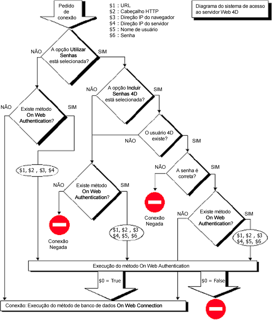 O funcionamento do sistema de acesso ao servidor Web 4D é resumido no seguinte diagrama: