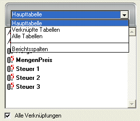 Wählen Sie im DropDown Menü für Tabellenwahl den Eintrag Berichtsspalten.