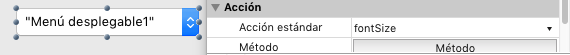 Asigne la acción estándar "fontSize" al menú emergente/objeto de lista desplegable al nivel del formulario: Nota: si no asigna la acción estándar genérica al objeto de formulario, no se beneficiará de la activación/desactivación automática de elementos según el contexto.