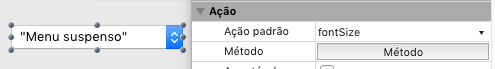 Atribue a ação padrão "fontSize" ao menu lista de objeto Pop up menu/Drop down ao nível de formulário: Nota: se não atribuir a ação padrão genérica ao objeto de formulário, não terá benefício da ativação/desativação de item automático de acordo com o contexto.