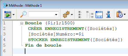 Nota: puede utilizar marcas como marcadores de las líneas que contienen un elemento encontrado por una búsqueda. En este caso, 4D añade automáticamente los marcadores. Para obtener más información, consulte la sección Buscar y reemplazar en métodos.