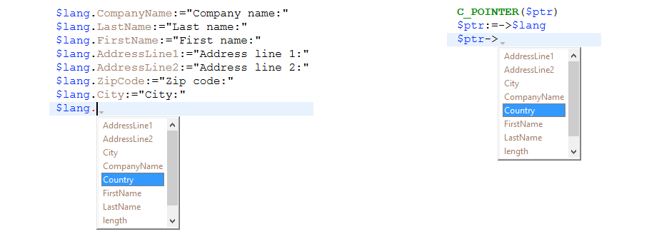 Si hay varias sugerencias disponibles, 4D las muestra en una lista desplegable cuando se pulse la tecla Tab:
