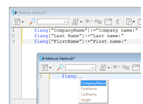 El editor de métodos tiene una función de "entrada predictiva". 4D muestra automáticamente las sugerencias basado en los primeros caracteres digitados.