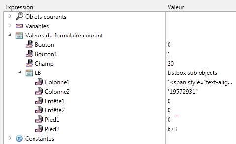 Ce thème contient le nom de chaque objet dynamique présent dans le formulaire courant, ainsi que la valeur de sa variable associée :