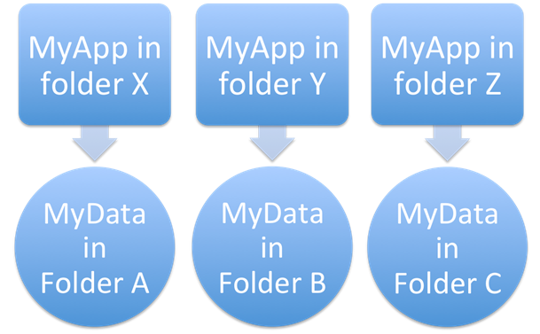Esto puede no ser adecuado si desea duplicar una aplicación fusionada destinada a utilizar diferentes archivos de datos. Las aplicaciones duplicadas comparten la carpeta de preferencias de usuario de la aplicación y por lo tanto, siempre utilizan el mismo archivo de datos, incluso si el archivo de datos cambia de nombre, ya que el último archivo utilizado para la aplicación se abre.