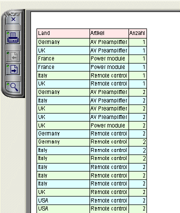 Im folgenden sehen Sie eine Vorschau für einen Bericht im Listenmodus mit wechselnden Hintergrundfarben: