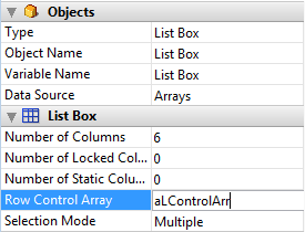 行管理配列は倍長整数型で、かつリストボックスと同じ行数を含んでいる必要があります。詳細な情報については、リストボックス特有のプロパティの章を参照して下さい。