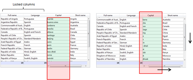 Par exemple, examinez le schéma suivant, dans lequel les coordonnées de la colonne Capital sont symbolisées par un rectangle rouge :