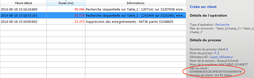 - Détails du process : fournit des informations supplémentaires concernant la table, le champ, le process ou le client, en fonction du type d'opération.