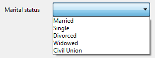 フォームを実行すると、4D が自動的に入力と表示中のポップアップメニュー/コンボボックスの状態を管理してくれます。ユーザーが値を選択すると、その値はフィールドに保存され、このフィールドの値はフォームが表示されたときにポップアップメニューの中に表示されます: