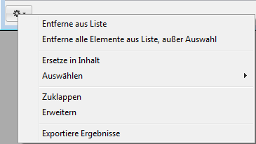 Sie können auf die Funktion Ersetze in Inhalt auch im Menü Optionen des Fensters mit dem Suchergebnis zugreifen.