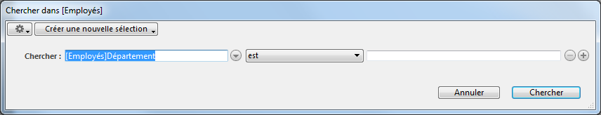 2. Conservez "[Employés]Département" comme critère de recherche et "est" dans la liste des comparateurs, puis saisissez "Ingénierie" :