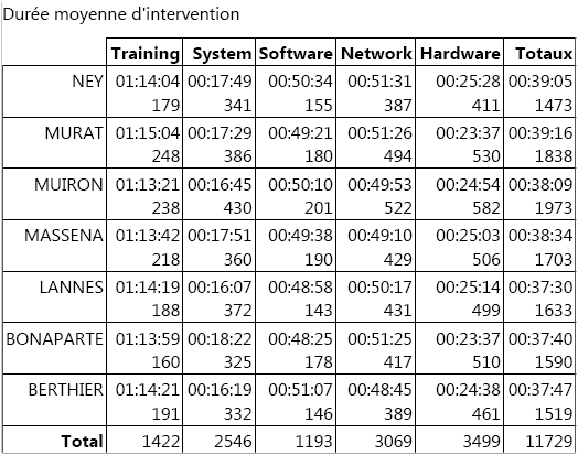 Par exemple, les catégrories du tableau croisé suivant ont été triées de droite à gauche (horizontale) et de bas en haut (verticale) :