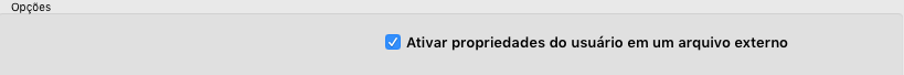 Quando a opção Ativar preferências de usuário em arquivo externo estiver selecionada nas Propriedades do banco, o arquivo de propriedades usuário for criado automaticamente. Sua localização depende do tipo de configuração de usuário.