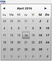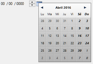 Añade un calendario asociado a una variable Date, que se puede configurar con el fin de especificar los días festivos, un rango de fechas, etc.
