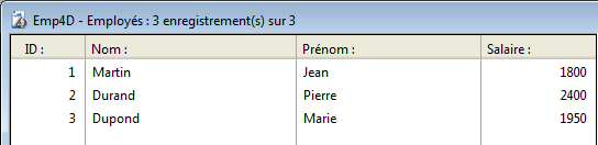 Cliquez sur le bouton Tables, laissez 4D créer les formulaires par défaut et créez quelques employés :