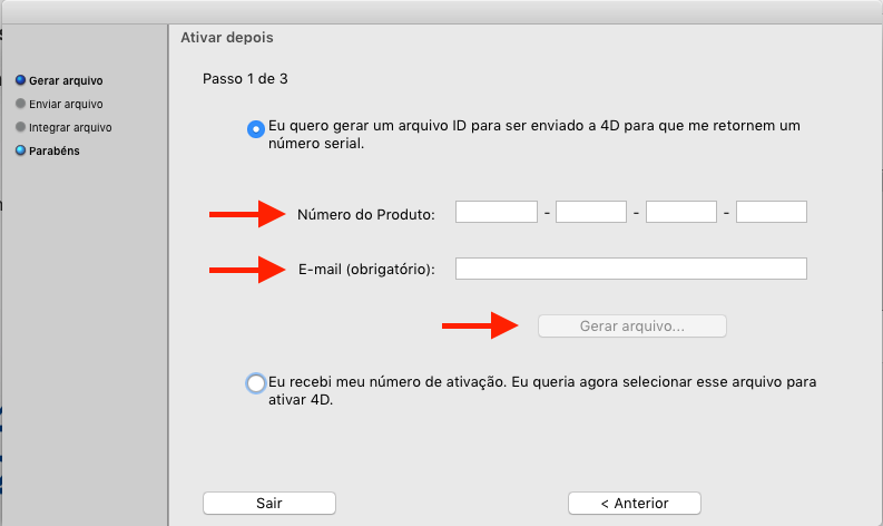 Entre o número de licença e seu email, depois clique em Gerar arquivo parar criar o arquivo ID (reg.txt).