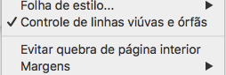 Além disso, as novas propriedades de parágrafo estão disponíveis no submenu Parágrafo...: