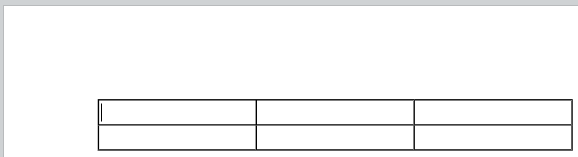 In a blank document, you want to add a new table with 3 columns and 2 rows: