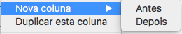 Também é possível duplicar uma coluna usando o menu contextual disponível quando dar um clique direito no cabeçalho. Escolha o comando Duplicar esta coluna e uma coluna idêntica é adicionada à direita da coluna original