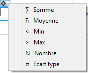 Les calculs disponibles sont accessibles via des boutons spécifiques dans la fenêtre contextuelle d'une ligne de sous-total ou d'une ligne/colonne de total :