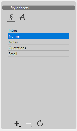 Este panel gestiona hojas de estilo para documentos en el área 4D Write Pro.