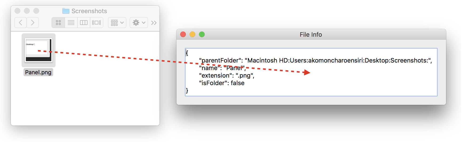Desea que el usuario seleccione un archivo en el disco, luego lo arrastre y lo y suelte en una variable editable (de tipo objeto) para que muestre una descripción del archivo json.
