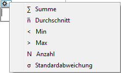 4D setzt das/die markierten Icons in die gewählte Zelle (wenn keine Bezeichnung hinzugefügt ist). Sie können in derselben Zelle mehrere Berechnungen setzen. Sie werden im generierten Bericht gestapelt. Nachfolgende Grafik zeigt die Icons Sum, Durchschnitt und Min in einer Zeile Zwischensumme: