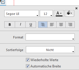 In manchen Fällen wollen Sie jedoch die Werte in Umbruchspalten wiederholen, so dass sie für jeden Datensatz angezeigt werden. Dazu öffnen Sie das PopUp-Menü im Spaltentitel und markieren die Option Wiederholte Werte:
