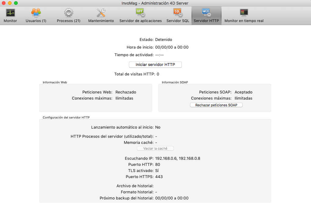 Una vez controlados y ajustados los puntos anteriores, debe iniciar el servidor web dentro de 4D. Este último punto se discute más adelante en esta sección.