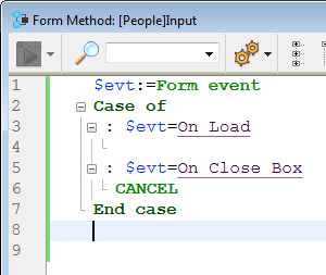 • Introduzca directamente su nombre en la ventana del editor de métodos. La función de entrada predictiva sugiere las constantes que corresponden al contexto de programación.