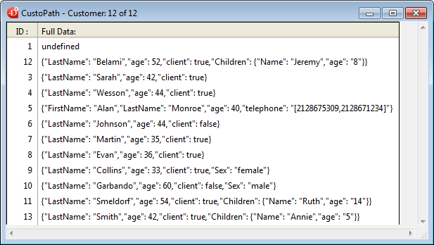 Se seu banco de dados contiver um campo objeto [Customer]full_Data (indexado) com 12 registros: