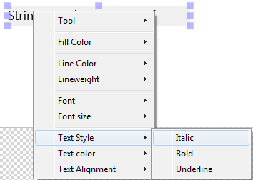 A área de gráficos do editor inclui tanto uma barra de ferramentas quando um menu contextual que pode ser usados para dseenhar seu modelo de etiqueta
